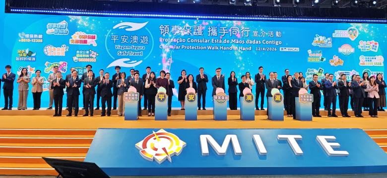 【本報訊】中華人民共和國外交部駐澳門特別行政區特派員公署、旅遊局和身份證明局今(12)日上午在第十四屆澳門國際旅遊(產業)博覽會主舞台,共同主辦“平安澳遊”——領事保護攜手同行宣介活動,透過國家安全專題分享、互動環節及影片展示等,向公眾推廣領事保護的知識,共同提升外遊安全防範意識與應對能力。
