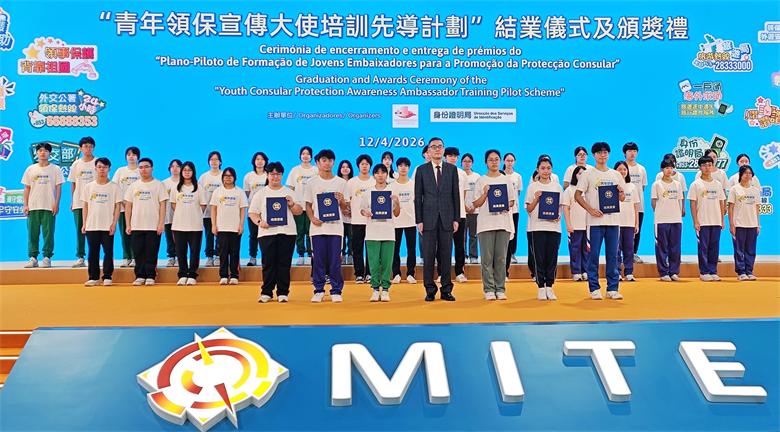 此外,外交公署與身份證明局早前合辦“青年領保宣傳大使培訓先導計劃”,藉本次宣介活動向積極參與的學生頒發結業證書及獎項。