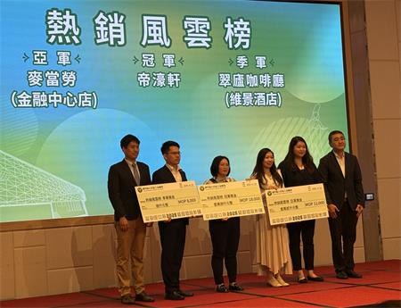 立法會議員施家倫、旅遊局副局長司徒琳麗、經科局產業發展廳代廳長黎志偉、消費者委員會消費權益保障廳代廳長黃枝昌、澳門新口岸區工商聯會理事長鐘志松、監事長胡錦漢、秘書長甄志峰以及一眾獲獎商戶代表共同出席。