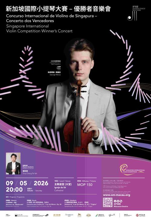 【本報訊】澳門樂團2025-26樂季節目之一,《新加坡國際小提琴大賽——優勝者音樂會》將於5月9日晚上8時在主教座堂舉行。音樂會由2026年新加坡國際小提琴大賽冠軍格奧爾基・莫羅茲(Georgii Moroz)聯袂澳門樂團演出,展現國際級音樂藝術的魅力。門票現正於澳門售票網公開發售。