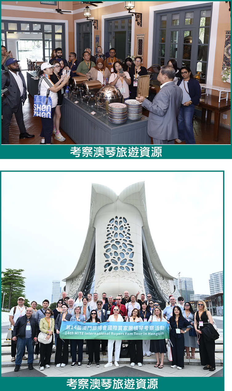 【本報訊】藉第十四屆澳門國際旅遊(產業)博覽會(簡稱:旅博會)舉行的契機,旅遊局組織來自世界各地的買家與海外旅遊業界參加澳門社區遊以及考察橫琴旅遊景點,體驗澳門和橫琴多元旅遊資源及最新發展,彰顯澳琴協同優勢。