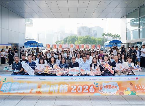 【本報訊】2026年4月19日,由澳門青年發展服務中心(下稱“青服中心”)與澳門科學館聯合主辦的“春季啡嘗澳門・咖啡節”,於澳門科學館心形樹廣場正式開幕。活動將持續至6月1日,中央人民政府駐澳門特別行政區聯絡辦公室教育和青年部李雪飛部長、經濟及科技發展局鄭曉敏副局長、衛生局戴華浩代副局長、市政署文康及公民教育廳龎筱韻代廳長、旅遊局旅遊產品及活動廳李雲慧代廳長、文化局公共圖書館管理廳林穎娜代廳長、教育及青年發展局青年發展處趙寶威處長、澳門科學館張雄發副館長、澳門旅遊大學管理及專業發展學院馮智廣講師、澳門青年發展服務中心黃永曦總幹事、中國工商銀行(澳門)股份有限公司中小企業市場總監林毓霞博士出席啟動儀式,共同見證這場以支持青年創業為核心、以傳承咖啡文化為脈絡的盛事開幕,與現場來賓、媒體朋友們一同重溫中國第一杯咖啡與澳門三百年的文化情緣,續寫這座中西交融城市的時代新篇章。