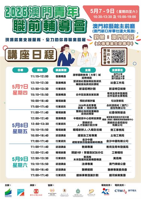 2026“澳門青年職前輔導會”講座日程