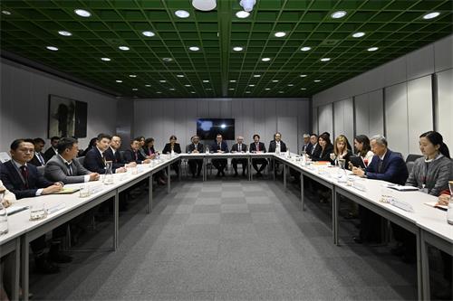 及後,岑浩輝與阿爾梅達一同會見隨行訪葡的20多位企業家代表,進行交流,建立聯繫,期望企業家把握中葡合作機遇,拓展自身業務的同時,亦共同為持續深化澳門平台作用,進一步加強中葡經貿合作貢獻力量。