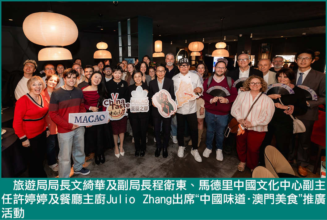 作為路展的前奏,旅遊局率先於4月16日在榮獲《西班牙米芝蓮指南2026》推薦的現代中式融合料理餐廳Soy Kitchen舉辦“中國味道・澳門美食”媒體推介活動,向約40位西班牙媒體代表及內容創作者介紹澳門的獨特美食文化及路展亮點,進一步提升澳門“創意城市美食之都”的國際形象,同時帶動人流參觀路展。曾於3月來澳門參加“2026澳門國際美食之都嘉年華”的餐廳主廚Julio Zhang亦在午宴上分享其設計澳門主題菜單的構思和想法。