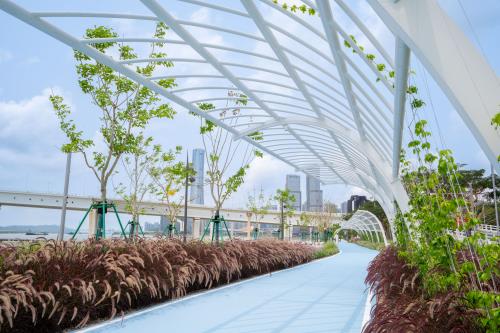 【本報訊】市政署按計劃分三區有序推進南岸海濱綠廊二期工程,繼一區於去年11月開放使用,介乎澳門旅遊塔至融和門之間的二區今(4月23日)起開放予公眾使用。