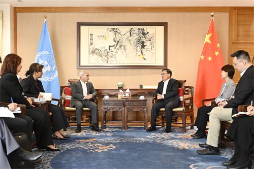 賈桂德歡迎行政長官到訪,並介紹中國常駐日內瓦代表團的功能及運作模式。他指出,代表團為國家根本利益服務,澳門是國家其中一個特別行政區,成功實踐“一國兩制”、“澳人治澳”、高度自治方針,具備獨特的國際平台作用,並積極參與不同的國際組織,有效助力國家高水平對外開放。在此基礎上,代表團將進一步支持澳門特區開展對外合作。
