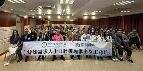 【本報訊】澳門牙科醫學會於2026年4月26日聯同澳門扶康會,於澳門扶康會朗程軒禮堂舉辦“特殊需求人士(殘疾人)口腔護理講座及工作坊”,在澳門牙科醫學會協助下,特邀台灣特殊需求者口腔醫學會黎達明專科醫師擔任主講。活動共吸引逾八十名參與者出席,涵蓋來自診所及衞生中心的牙科醫生、護士,以及澳門扶康會、明愛、工聯、救世軍、菩提等機構的前線照顧者,多方攜手,共同回應特殊人士口腔健康這一重要社會課題。