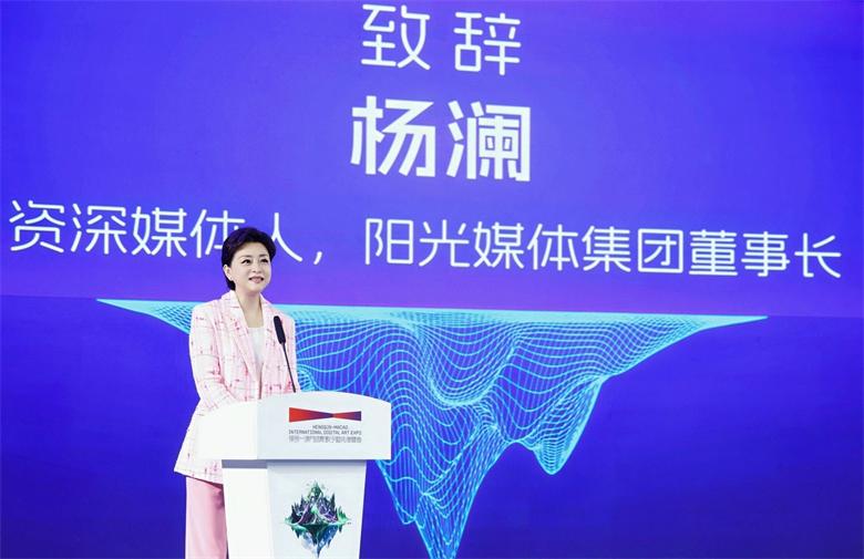 楊瀾致辭表示,橫琴粵澳深度合作區良好的政策環境和多元包容的文化胸懷為數字藝術的萌芽和發展提供了豐沃的土壤。生成式AI的出現,讓提問力、共情力、審美力等以人為核心的創造價值顯得更加珍貴。本屆博覽會的意義不僅僅在於展示數字作品,更是要在創新生態中,直面AI對傳統創作模式與市場體系的衝擊,探索藝術表達的新語境與新價值。