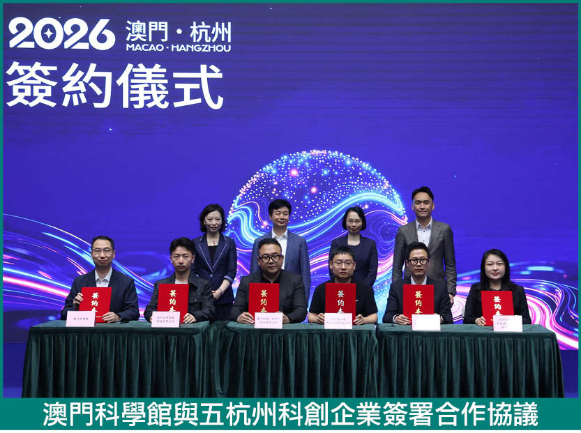 【本報訊】“科學精神青春綻放”2026杭州科創企業與青年面對面活動427日在澳門科學館會議廳舉行。為配合國家“十五五”規劃將人工智能確立為推動新質生產力核心引擎的戰略方向,以及澳門特區政府提出以“教育、科技、人才”一體化發展推動AI與科普教育的深度融合,澳門科學館與五家來自杭州的科創企業簽署合作協議,由澳門科學館館長邵漢彬代表館方簽署。