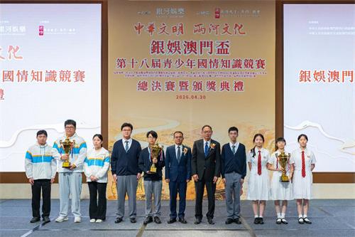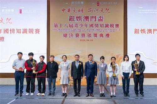 【本報訊】由銀河娛樂集團(下稱“銀娛”)連續18年冠名贊助、國情教育(澳門)協會主辦的“銀娛澳門盃—第十八屆青少年國情知識競賽”總決賽暨頒獎典禮,今日假銀河國際會議中心圓滿舉行。今屆賽事以“中華文明•兩河(黃河和長江)文化”為主題,吸引澳門27所中學及9所高等院校逾16,000名學生踴躍參與,參賽規模再創新高。作為澳門持續舉辦時間最長、覆蓋範圍最廣、影響力最大的國情知識競賽,該賽事自2009年創辦以來,已累計吸引超過16萬名澳門學生參與,充份彰顯了全澳學界對國情教育的高度重視,以及澳門青少年學習國情知識、認同國家發展、傳承中華文化的濃厚熱情與堅定自覺。