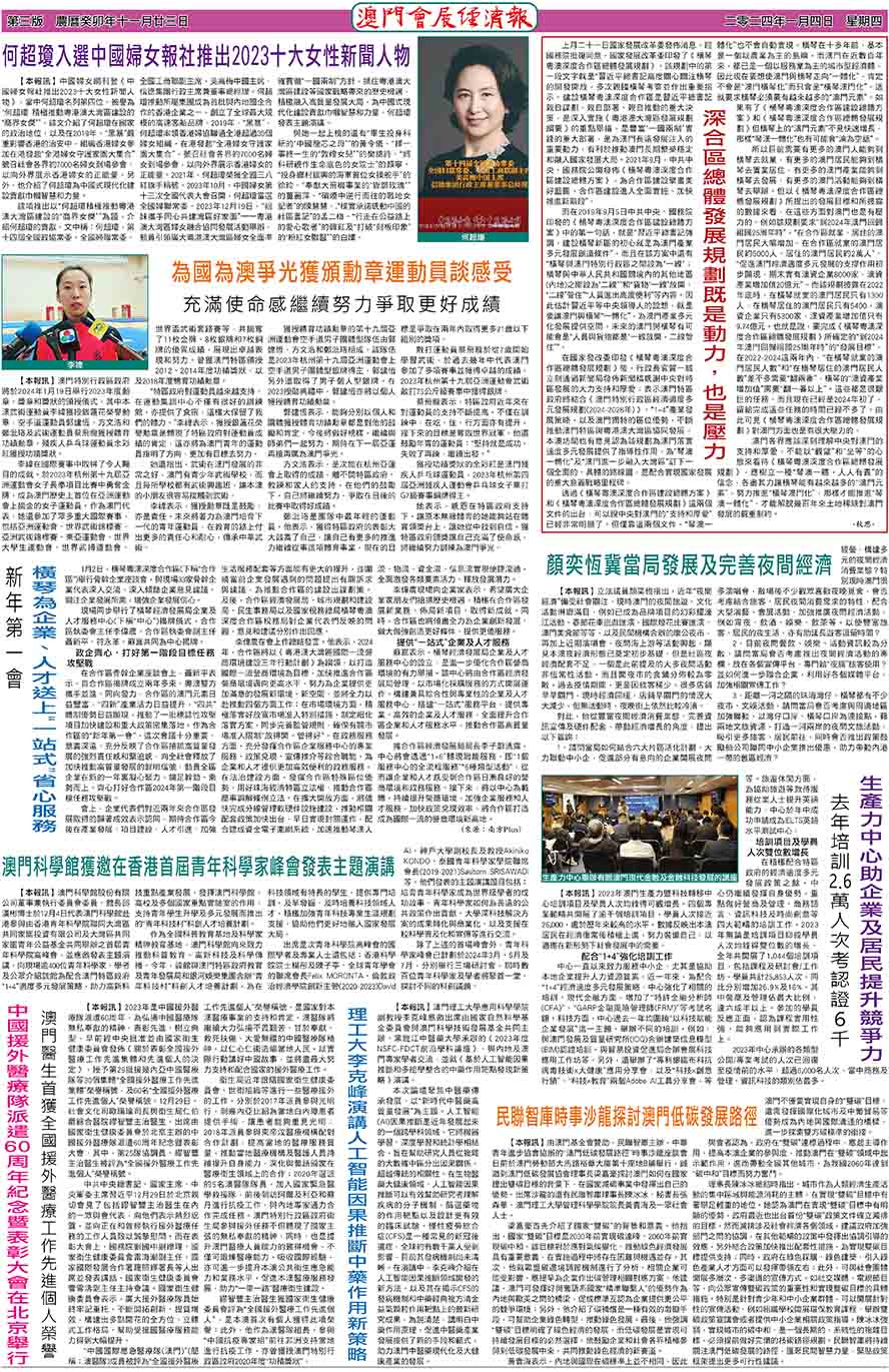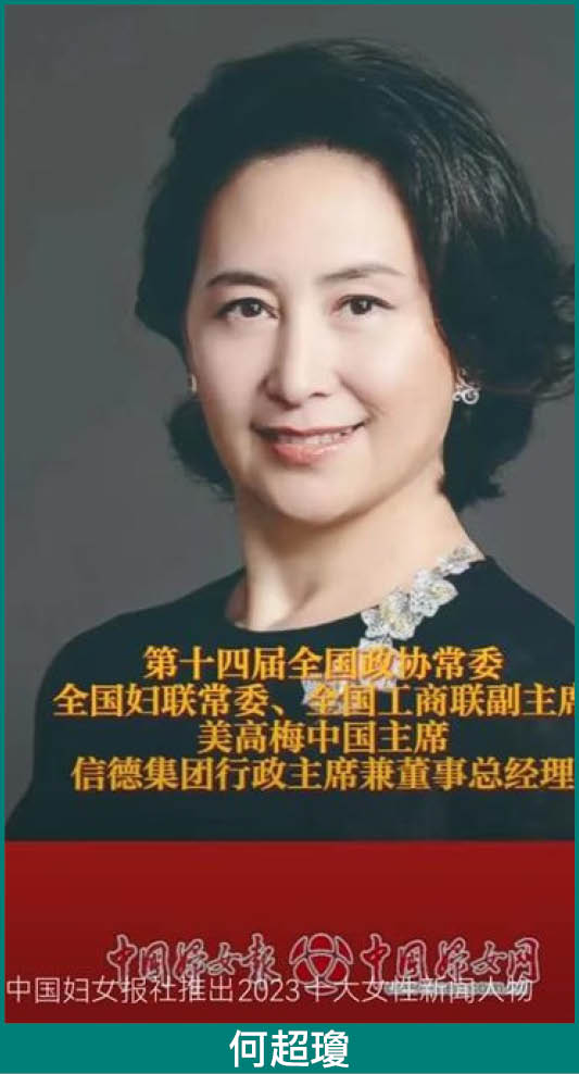 【本報訊】中國婦女網刊登《中國婦女報社推出2023十大女性新聞人物》,當中何超瓊名列第四位,被譽為“何超瓊積極推動粵港澳大灣區建設的‘商界女傑’”,該文介紹了何超瓊在國家的政治地位,以及在2019年,“黑暴”嚴重影響香港的治安中,組織香港婦女參加在港發起“全港婦女守護家園大集合”號召社會各界約7000名婦女到場參會,以向外界展示香港婦女的正能量,另外,也介紹了何超瓊為中國式現代化建設貢獻巾幗智慧和力量。