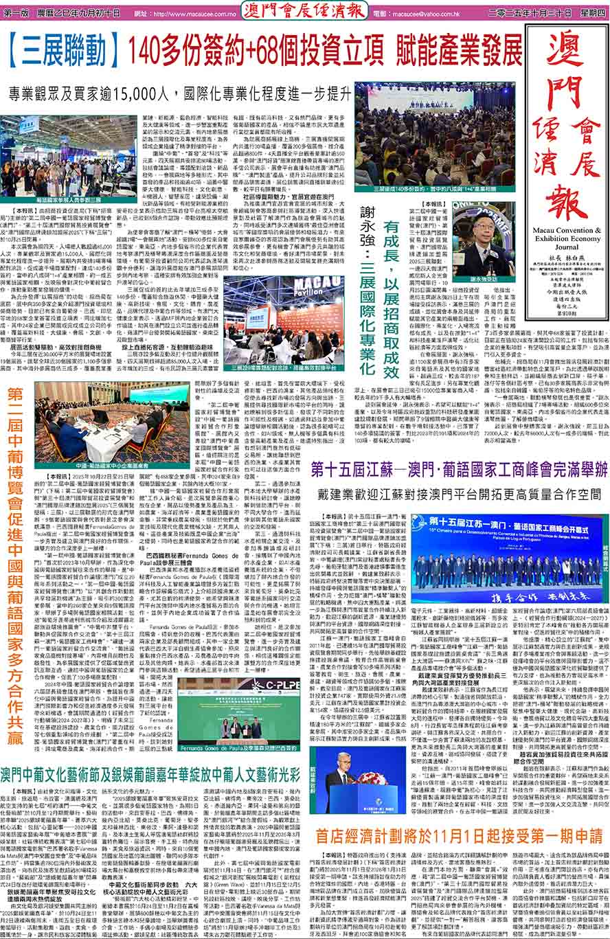 他指出,澳門的平台角色非常重要,為葡語國家與中國的共同發展、互利共贏作出了重要貢獻,他相信中葡論壇平台將持續發展,橋樑作用日益增強。他期望未來通過澳門平台為安哥拉帶來更多投資者,進一步加強安哥拉與中國內地及澳門的經貿往來,安哥拉將迎來更多更好的發展機遇。同時亦希望特區政府推出更便利措施,促進兩地居民互訪,加強安哥拉與澳門的人文交流。
