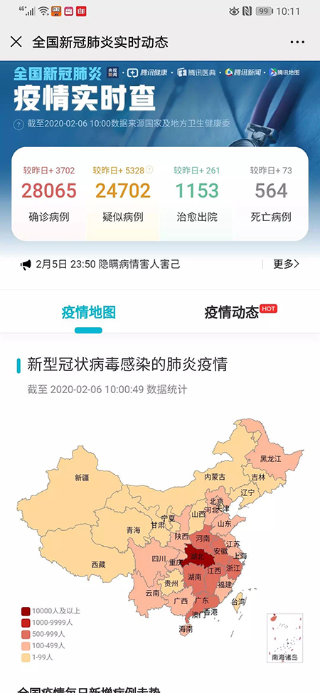 該服務提供疫情動態實時看,通過匯集國家衛健委、各省市區衛健委、各省市區政府以及港澳台官方渠道的權威信息,清晰展現全國各地(含港澳台地區)以及海外國際的最新疫情,公佈權威疫情動態及抗疫信息,及時瞭解正規真實的相關信息。除了疫情動態外,亦提供熱門科普、發熱自查、疫情辟謠等抗疫專題知識。