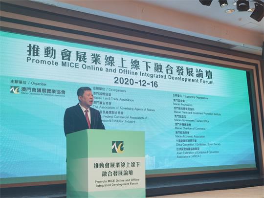 【本報訊】澳門特區政府近年以“會議為先”推動行業發展已取得一定成效,未來會展業將朝著國際化、市場化、高端及專業的方向邁進, 而粵港澳大灣區合作是會展業未來重要的發展方向。由澳門會議展覽業協會主辦的“推動會展業線上線下融合發展論壇”於12月16日假澳門旅遊塔會展娛樂中心三樓舉行,共同探討在資訊化、數字化的時代背景及互聯網技術日趨成熟之下,會展業所面臨的機遇與挑戰,為“數字會展”、“智慧會展”的發展前景建言獻策,助推澳門會展業創新發展模式,優化產業結構,不斷提升澳門作為國際會展之都的影響力及競爭力。