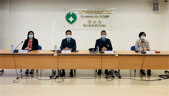 【本報訊】新型冠狀病毒感染應變協調中心(下稱應變協調中心)於12月28日舉行例行記者會,仁伯爵綜合醫院羅奕龍醫務主任、治安警察局行動及通訊處馬超雄處長、旅遊局公共關係處劉鳳池處長、疾病預防控制中心傳染病防制暨疾病監測部梁亦好協調員共同會見傳媒。