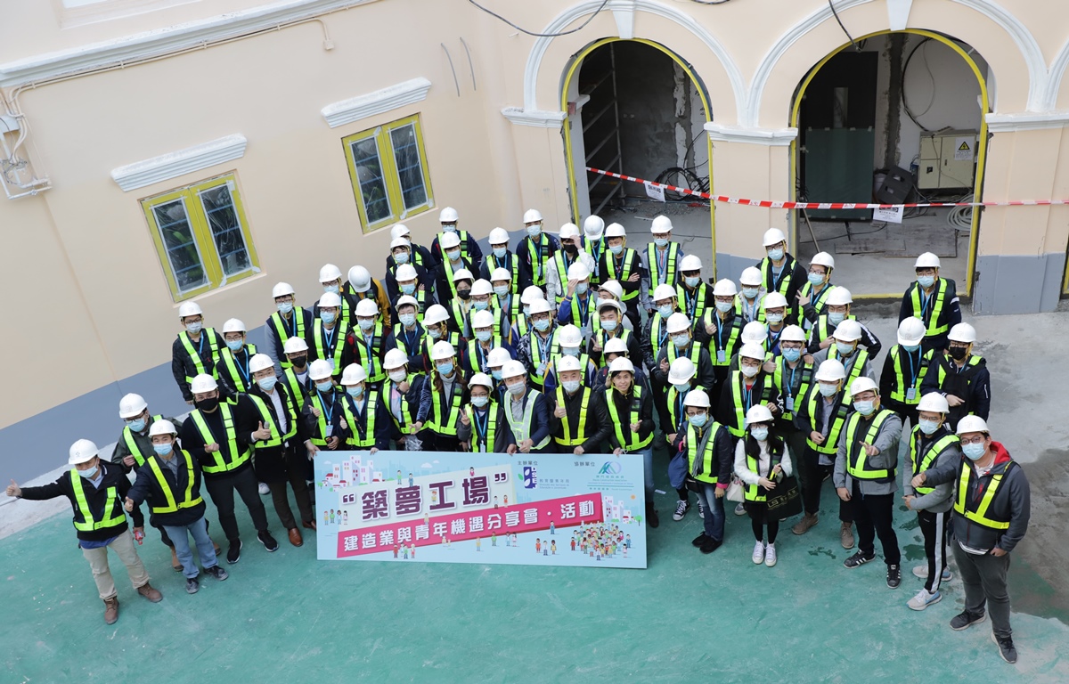 分享會後隨即前往聖庇護十世音樂學院工地視察,原址為利瑪竇小學,屬老式葡萄牙莊園式建築,被評定具建築藝術價值之樓宇,故保留外牆及門窗頂部的圓形浮雕及花環,期間需克服不少建築上難題。接著工業安全主任帶大家實地參觀,並細心講解樓宇結構、窗頂浮雕修建、天花施工技術、排氣裝置等工序。參加者認為是次活動能加深對業界及行業具體工作的認識,這為日後職業生涯發展方向提供參考,期待教青局將來舉辦有更多相關的活動。