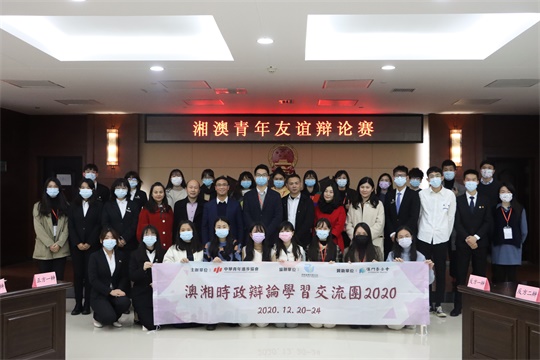 【本報訊】中華青年進步協會主辦,湖南省青年聯合會協辦,澳門基金會贊助的“澳湘時政辯論學習交流團2020”由青進會常務副理事長兼秘書長施逸任團長,帶領“全澳青年辯論公開賽2020——青年盃”獲勝辯手及指導老師,一行共二十人前往湖南長沙進行為期五天的學習交流。行程參觀了毛主席故居、湖南省博物館、馬欄山視頻文創產業園,並與中南林業科技大學進行辯論友誼賽。