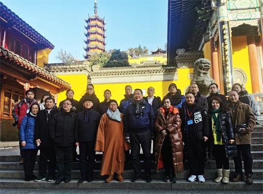 參訪團抵達千年古剎金山寺時,江蘇省佛教協會會長、金山寺方丈心澄已山門前等候。心澄向大家介紹了中國佛教的發展歷程以及江蘇佛教寺廟建設的特點,並一一贈送了開光金卡和佛珠。