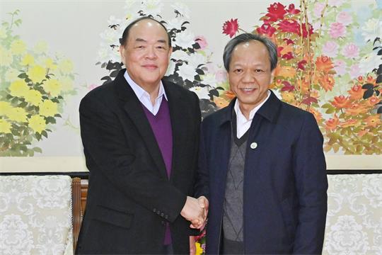行政長官賀一誠與佛山市委副書記、順德區委書記郭文海會面【本報訊】行政長官賀一誠9日轉抵佛山市繼續粵港澳大灣區城市的訪問行程,與佛山市委副書記、順德區委書記郭文海會面,雙方就文化旅遊、科技、中醫藥產業等領域的合作交換意見,期望兩地進一步深化交流合作,共促大灣區發展。