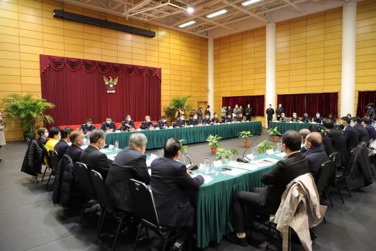 【本報訊】於2021年1月12日上午,澳門物業管理業商會劉藝良永遠會長、澳門街坊會聯合總會吳小麗理事長及澳門不動產管理專業技術人員協會楊永泰會長等一行30多人到訪消防局總部進行會議;會議由消防局局長梁毓森消防總監主持,各領導及部門主管列席,雙方就冬防及新春期間的消防工作進行深入交流。