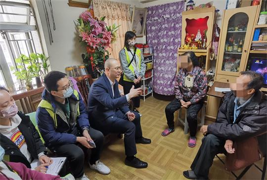 【本報訊】為向社區傳遞關愛互助精神,並喚醒社會大眾加強對弱勢群體的關心及重視,日前,民眾建澳聯盟主席施家倫、副理事長許龍通及常務理事施逸,聯同一眾義工隊成員到本澳各區,探訪行動不便或需卧床的長者、長期病患者及獨居老人,為他們送上生活物資並表達關心慰問,在交流聆聽的過程中了解他們在生活、出行及其他各方面的訴求。
