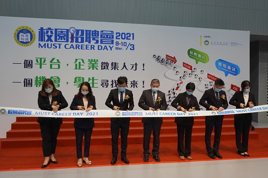 招聘會開幕式於上午十時半於澳科大R座綜合教學大樓綜藝廳舉行,中聯辦教育與青年工作部助理徐之平、教育及青年發展局青年廳廳長張敏輝、經濟及科技發展局科技廳謝廳長永強、社會保障基金社會保障制度廳廳長陳寶儀、貿促局公共關係及對外合作廳高級經理劉敏婷、勞工事務局就業廳職務主管黃少君,澳科大副校長姜志宏、鄺應華、蘇育洲、各院所長與行政主管及參與企業代表出席。