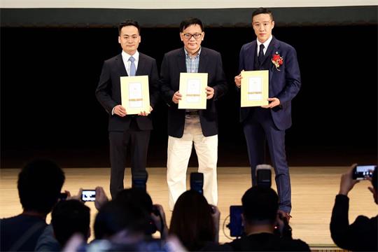 左起:順聯動力創始人郭洪安丶澳大校友會理事長葛萬金丶中天宏信金融集團總裁何俊杰三方互換合作協議書。