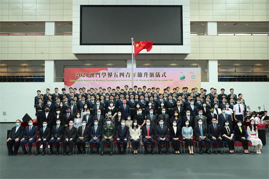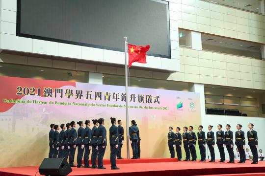 “澳門學界五四青年節升旗儀式"於5月4日早上7時45分在澳門理工學院體育館舉行。活動由鏡平學校(中學部)管樂團現場奏樂開始,約90位澳門學界升旗隊隊員隨著音樂步操向升旗台,升旗儀式在中華人民共和國國歌奏起時莊嚴地進行。在濠江中學、教業中學、嘉諾撒聖心英文中學、氹仔中葡學校和何東中葡小學5所學校合唱團的帶領下,場內約700名參加者共同高唱國歌,整個場館響徹嘹亮的歌聲,洋溢高漲的愛國之情。升旗儀式邀請到社會文化司司長歐陽瑜、中央人民政府駐澳門特別行政區聯絡辦公室副主任羅永綱、中華人民共和國外交部駐澳門特別行政區特派員公署特派員劉顯法、中國人民解放軍駐澳門部隊參謀長趙建明、教青局局長老柏生、高等教育委員會代表、非高等教育委員會委員、青年事務委員會委員、教學人員專業委員會委員、高等院校領導、學校校長及青年社團代表等出席。