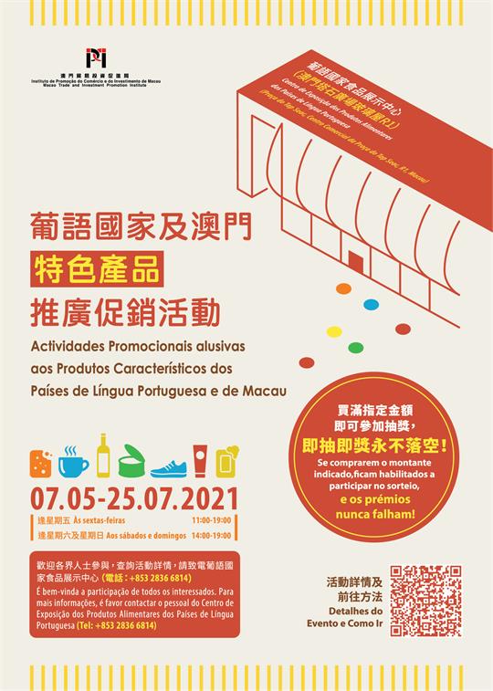 是次為期3個月的促銷活動由貿促局主辦,12個星期的活動將各安排由8至13家來自葡語國家食品展示中心及商匯館的展商企業展銷自身特色產品,種類多元,包括:咖啡、酒類及其他飲品、手信食品、罐頭食品、調味醬料、健康食品、香薰精油、飾品、鞋類用品等。同時是次活動設有抽獎環節,凡購物滿指定金額則可獲得抽獎機會。歡迎市民及客商到場參與及進行商務洽談,尋求更多合作商機。