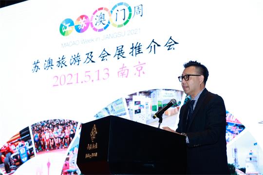 【本報訊】澳門特別行政區政府旅遊局與澳門貿易投資促進局先後於北京及杭州的澳門周舉辦“澳門旅遊會展推介會”,並自3月起到粵港澳大灣區多個城市進行推廣。藉“江蘇澳門周”的良機,兩局13日攜同相關澳門業界在江蘇省省會南京舉辦“蘇澳旅遊及會展推介會”,積極介紹澳門旅遊業及會展業的優勢,讓兩地業者交流洽商,並宣傳澳門健康安全宜遊的城市形象。