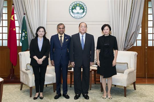 行政長官歡迎新任聯合國駐華協調員常啟德訪澳,並向常啟德一行介紹了澳門特區的發展狀況和整體施政方向。他指出,按照中央政府的要求,澳門積極推進可持續發展策略。澳門是中國與葡語國家商貿合作服務平台,一直與葡語系國家及其派駐中國-葡語國家經貿合作論壇(澳門)常設秘書處的代表保持密切關係,落實多邊合作,達致共同發展目標。在澳門的聯合國大學國際軟件技術研究所成立至今已培養了很多人才,未來將共同探索如何發揮更大作用。