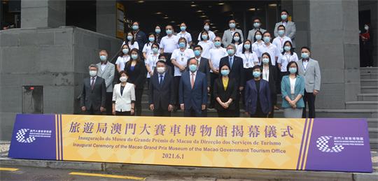 行政長官賀一誠、經濟財政司司長李偉農及旅遊局局長文綺華主持醒獅點睛儀式並與一眾嘉賓在澳門大賽車博物館前合照。隨後,行政長官賀一誠在經濟財政司司長李偉農陪同下主持揭幕儀式。