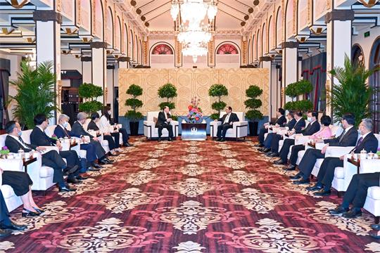 行政長官指出,上海的發展理念是澳門學習的榜樣,今次率領特區政府代表團赴上海就是抱着學習的心態,學習其發展經驗。行政長官提到,國家主席習近平對澳門的發展有很高的期望。澳門地方細小,需要挑選適合的產業,適度多元化發展。他期望藉着學習上海的發展經驗,包括人才培養及高校的管理經驗等,思考如何利用橫琴的空間把旅遊、會議等產業帶動起來。