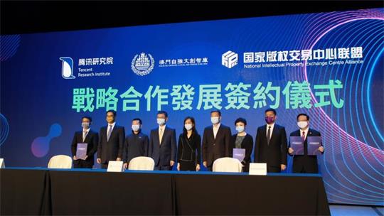 論壇也舉行了騰訊研究院與澳門自強文創智庫戰略合作簽約儀式,以及澳門自強文創智庫和國家版權交易中心聯盟版權戰略合作簽約儀式,這代表兩地數字文化產業實現良好發展又向前邁出了堅實的一步。騰訊研究院、國家版權交易中心聯盟與澳門自強文創智庫在正式成為合作夥伴後,將共同攜手,充分發揮各自在文化、資源、政策、技術等方面的優勢,本著優勢互補、資源分享、相互促進、共同發展的原則,通過文化賦能,串聯起數位文創產業全鏈條資源,不斷豐富、完善澳門文創產業生態,推動澳門文創產業向數位化轉型升級。
