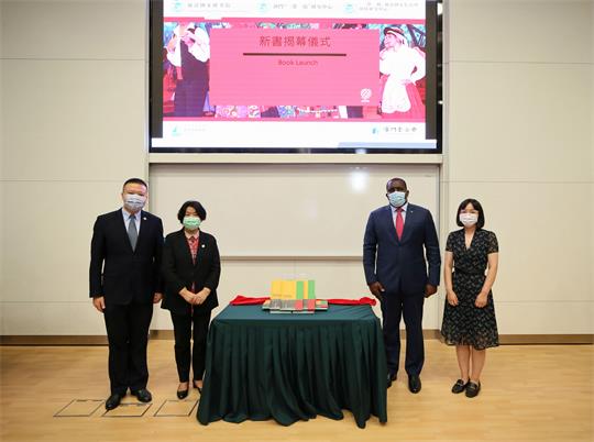 城大孔繁清副校長、葉桂平協理副校長與中國—葡語國家經貿合作論壇(澳門)常設秘書處聖多美和普林西比派駐代表施蒙格、新書作者吳玉嫻博士一同為新書揭幕。