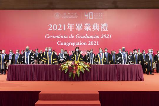 【本報訊】澳門大學今(19)日舉行2021年畢業典禮。行政長官兼澳大校監代表、社會文化司司長歐陽瑜期盼澳大在未來繼續創造更多優秀科研成果,培養更多愛國愛澳人才,助力澳門經濟適度多元發展。