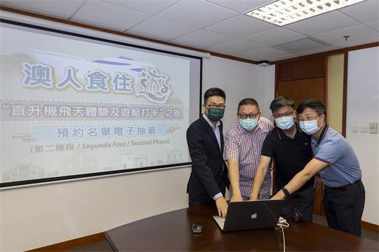 【本報訊】“澳人食住遊”第二階段整合推出共19條路線,由6月17日起開始報名,當中的“直升機飛天體驗及遊艇打卡”路線報名於昨(20日)傍晚6時截止,共有3,496名澳門居民報名,加上首階段已報名又未中籤的14,486名居民,是次抽籤名單合共有17,982人。電子抽籤於今(21日)上午10時在旅遊局進行,旅遊局副局長程衛東聯同澳門旅行社協會、澳門旅遊商會及澳門旅遊業議會組成的工作小組代表共同按鍵抽籤。
