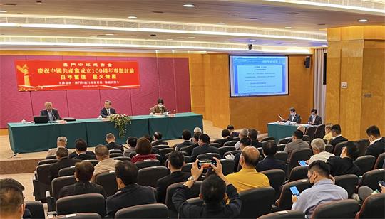 【本報訊】澳門中華總商會昨(21)晚在會址舉行「慶祝中國共產黨成立一百周年——百年奮進星火燎原」專題討論,邀請了澳門特區行政會委員楊道匡擔任主講嘉賓。出席的有中總理事長高開賢,副理事長崔煜林、崔世平、林金城、余健楚、黃國勝、劉藝良、馬志毅、何佩芬、黃樹森、徐達明、蕭志偉、莫志偉、葉兆佳,副監事長梁安琪、梁少培,會務顧問梁顯達等。