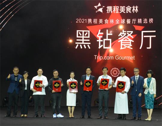 “2021攜程美食林”榜單全新升級為由“黑鑽、鑽石、鉑金、金牌、銀牌”構成的5大階梯。今天會上放榜同時為入榜黑鑽、鑽石、鉑金的餐廳頒獎。澳門特區政府旅遊局局長文綺華、澳門中聯辦經濟部副部長朱宏受邀為榜單中最高殊榮“黑鑽”餐廳頒獎。