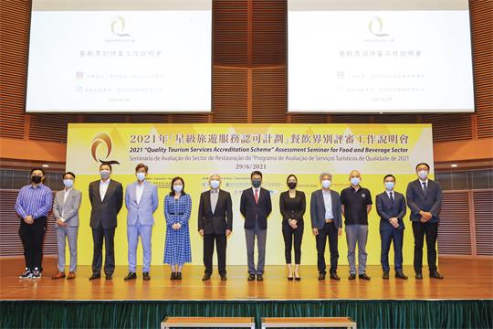 旅遊局副局長程衛東、旅遊局培訓及質量管理廳廳長梁美彩、市政署代表湛耀宏、澳門旅遊學院代表楊晶晶副教授、消費者委員會代表袁潤森、澳門餐飲業聯合商會會長陳澤武、澳門中小型餐飲業商會理事長楊永成、澳門旅遊商會副理事長鄧嘉敏、澳門旅行社協會秘書長梁小彬以及澳門酒店協會大會秘書梁振昇等出席評審工作說明會。