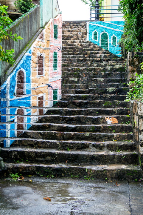 氹仔風景巷石級壁畫呈現舊城特色風情