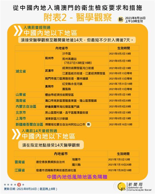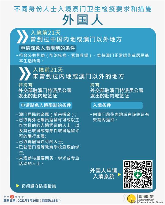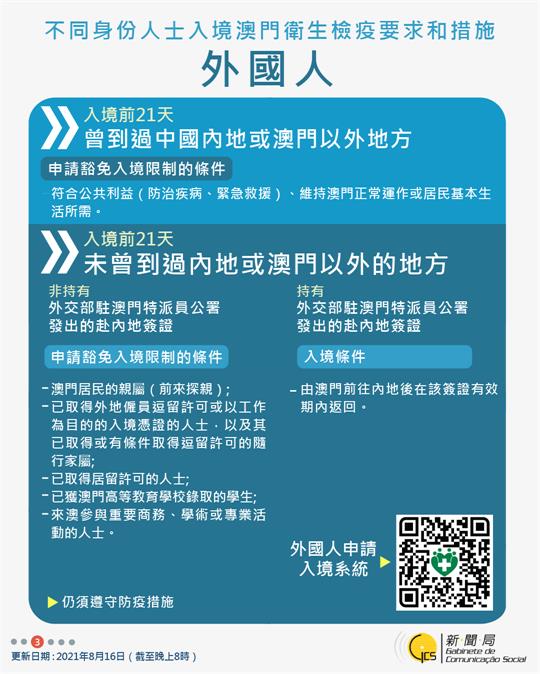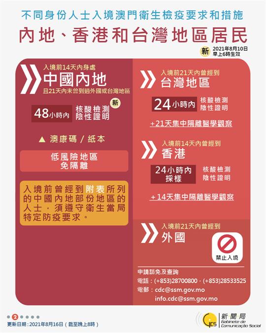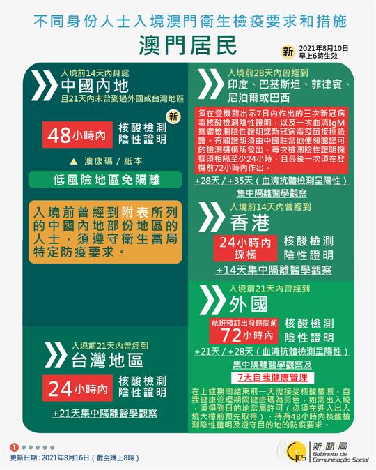 【圖文包】2021/08/16最新入境澳門衛生檢疫要求和措施