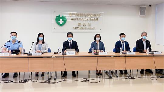 【本報訊】新型冠狀病毒感染應變協調中心(下稱應變協調中心)於8月16日舉行記者會,仁伯爵綜合醫院醫務主任戴華浩醫生、旅遊局傳播及對外關係廳劉鳳池廳長、教育及青年發展局非高等教育廳黃嘉祺廳長、社會工作局社會互助廳蔡兆源廳長、治安警察局公共關係處李德輝處長、疾病預防控制中心傳染病防制暨疾病監測部梁亦好協調員共同會見傳媒。