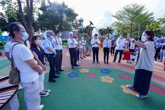 市政管理委員會副主席羅志堅,委員關施敏等,陪同市政諮詢委員會主席司徒民義、副主席鍾國榮及多名委員視察氹仔海濱休憩區內新增的兒童遊樂區。市政署人員介紹時表示,為完善氹仔海濱休憩區單車徑周邊配套,將休憩區海濱廣場側作重新規劃設計成兒童遊樂區,佔地面積約七百五十平方米,劃分不同年齡區域。兒童遊樂區以山坡、草地及大地色系作主色,配以昆蟲、花朵、植物等元素點綴;設有適合五至十二歲兒童的大型滑梯組合、具歷奇元素的繩網組合及山坡滑梯、同時設有共融元素的親子鞦韆及籃型鞦韆,亦設有適合二至五歲幼童使用的遊戲架組合及搖馬遊具等。配合周邊的自然環境,除保留原有樹木外,亦加種樹木及綠化以達到自然遮陽的效果。另外,新增設施亦包括佔地約三百一十八平方米的康體區,設多功能健身組合、健身單車、滑行機等,適合青年及成年人鍛鍊。園區入口處設有兒童洗手盆及飲水機設施,方便市民使用。