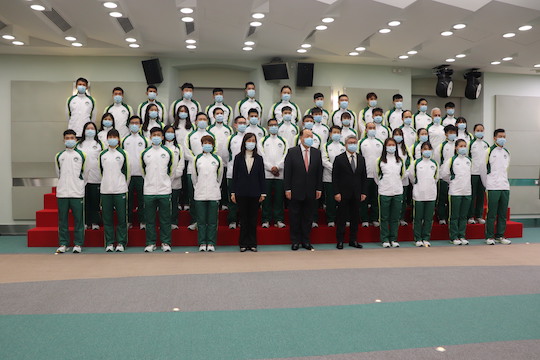 澳門特別行政長官賀一誠在致詞表示,希望代表團全力以赴,為澳門特別行政區爭取榮譽。衷心祝願運動健兒們取得好成績,滿載而歸。