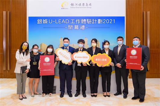 【本報訊】銀河娛樂集團(下稱「銀娛」)致力培育本澳青年人才,積極透過多元方式為年輕人提供不同培訓及事業發展機會。今年,銀娛連續第2年支持澳門特別行政區政府勞工事務局(下稱「勞工局」)之「職出前程實習計劃2021」職場體驗計劃,並再度推出「U-LEAD」工作體驗計劃(下稱「『U-LEAD』」),向本澳高等院校的畢業生提供為期3個月於大型綜合度假城的實習機會,助其豐富職場工作經驗,提升專業技能及職場競爭力,為未來事業發展奠定良好基礎。