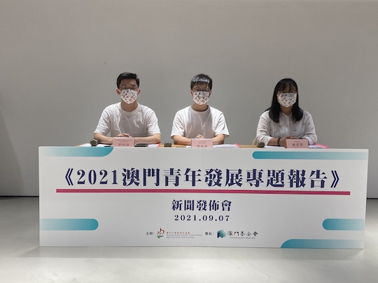 9月7日新青協於“369合夥小鎮”召開《2021澳門青年發展專題報告》新聞發佈會。研究小組組長、新青協副理事長陳皚臻,新青協經濟政策關注組副召集人郭明喆及研究協調員陳家賢出席發佈會並會見傳媒。