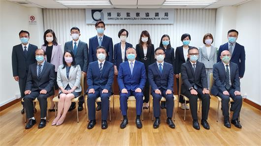 博監局8日 舉行主管就職儀式。在博監局局長何浩瀚主持監誓,廖志聰副局長及各部門主管見證下,調查廳廳長林弋、法律及准照廳廳長古立文、設施及資訊廳廳長鄺超嘉、監察一處處長Paulo Jorge Moreira Castelo Basaloco、監察二處處長楊海恩、博彩設備監察處處長趙幽默、行動處處長邱志輝、法律處處長許爽瑜、准照處處長譚敏堅、財稅審計處處長李慧文、合規審計處處長黃朗平、網絡及設施處處長王寶健、資訊處處長楊仲恆、研究及資料分析處處長杜子柔宣誓就任。