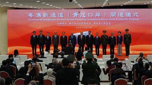 9月8日,粵澳新通道青茂口岸舉行開通儀式,澳門特別行政區行政長官賀一誠,全國政協副主席何厚鏵,廣東省省長馬興瑞,中國人民解放軍駐澳門部隊政委孫文舉,國家移民管理局副局長曲雲海,海關總署國家口岸管理辦公室副主任党英杰,珠海廣東省人民政府副省長張新,澳門特別行政區保安司司長黃少澤,珠海市市委書記郭永航,武警廣東總隊總參謀長等出席開幕儀式。